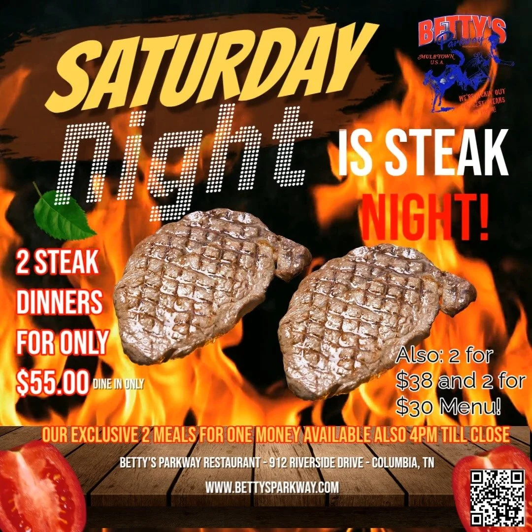 For over 34 years, Betty's has been a staple in Columbia. This beloved restaurant is the oldest family-owned restaurant in Maury County, TN. It started as a Parkway Inn around 1986 at the corner of Nashville Highway & Old Bear Creek Pike and continues to offer patrons an unforgettable dining experience.