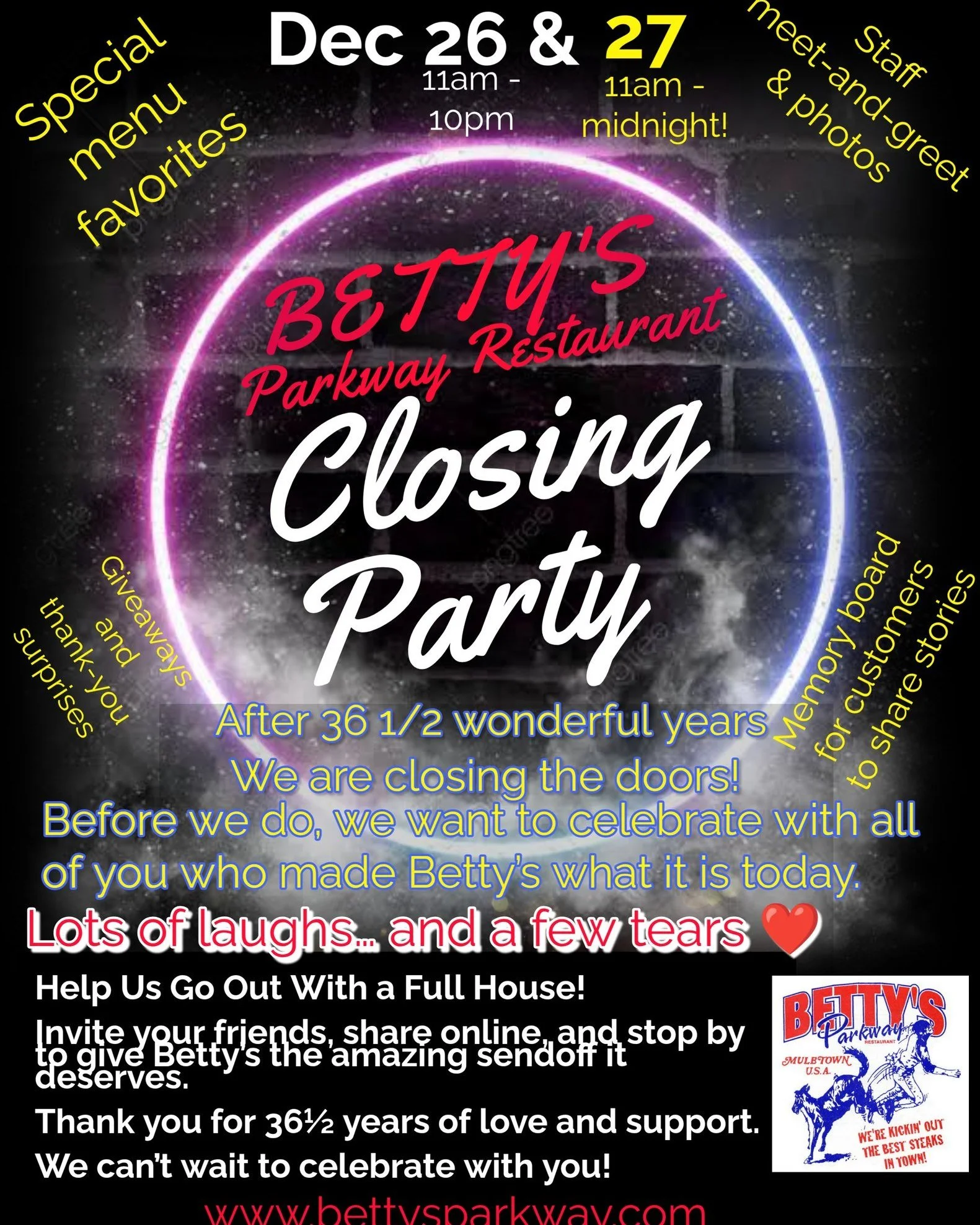 Click below to follow us on social media to keep up with what’s happening at Betty’s Parkway & learn about our specials!